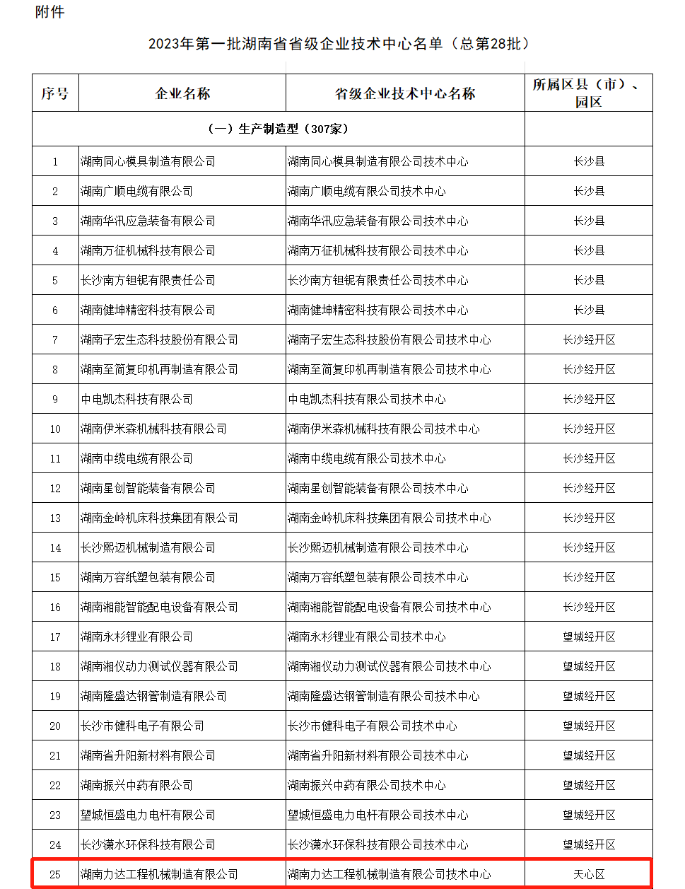 根据《湖南省省级企业技术中心认定管理办法》(湘工信科技〔2022〕275号)要求,经企业自愿申报、市州(县)工信部门审查推荐、专家评审,我厅研究确定湖南同心模具制造有限公司等373家(其中生产制造型307家、研发设计型66家)企业的技术中心为2023年第一批湖南省省级企业技术中心(总第28批),湖南力达工程机械制造有限公司荣获湖南省省级企业技术中心。