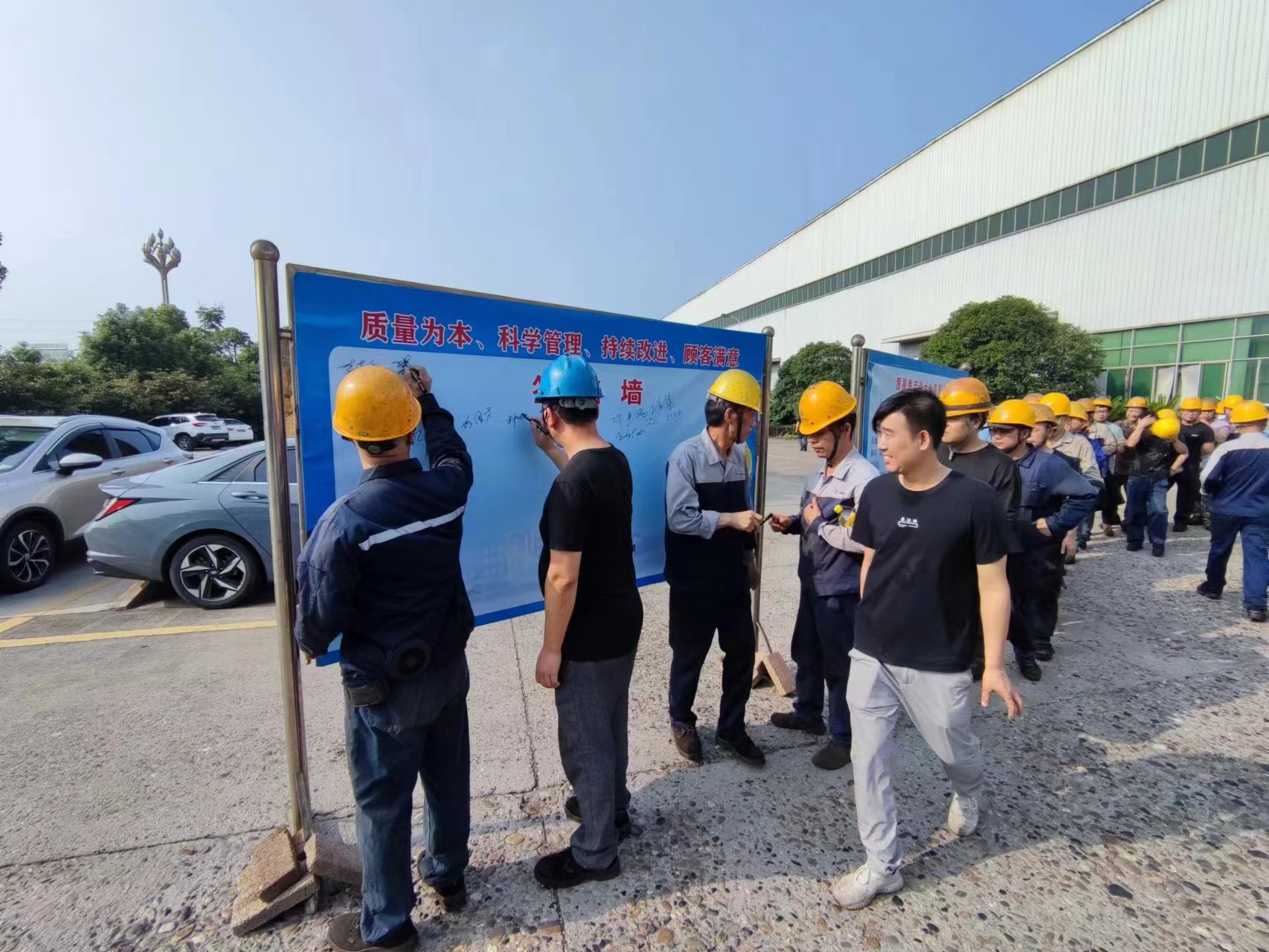 宣誓完成后全体员工在质量承诺墙上签名。