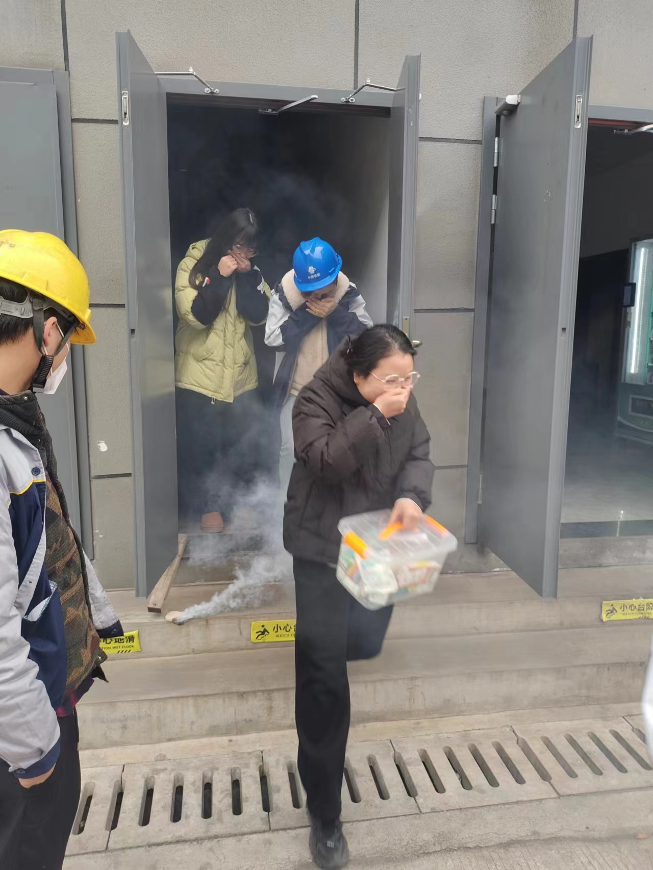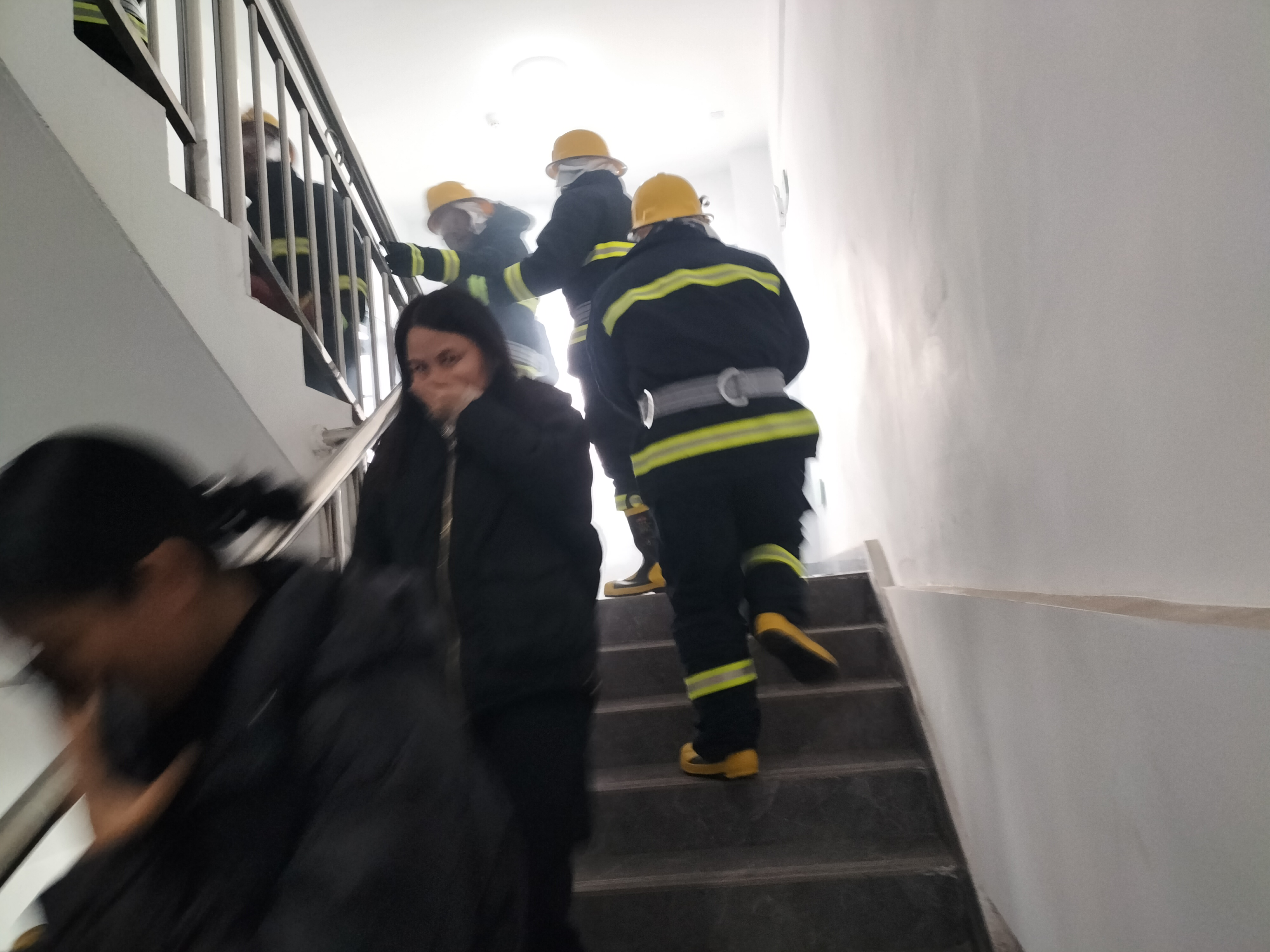 中部副总经理晏吐生介绍了消防演练流程及注意事项。“捂口鼻,弯腰低姿,注意脚下安全!”随着消防警报声响起,楼道烟雾弥漫,消防安全演练正式开始。消防应急队伍火速赶往现场灭火;疏散组的引导下,参练人员用湿纸巾捂住口鼻,弯腰低姿,快速有序地沿着逃生通道向安全区域撤离,对预设受伤员工进行护理包扎处理。