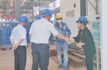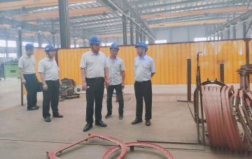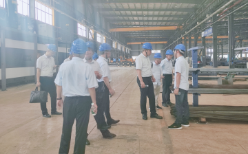 李国仓副总一行先到车间参观了中钢智能的生产制造现场,对于湖南中钢的先进加工设备集群表示赞叹,并对湖南中钢从材料到加工、制造配套的“一站式”服务模式表示充分肯定。