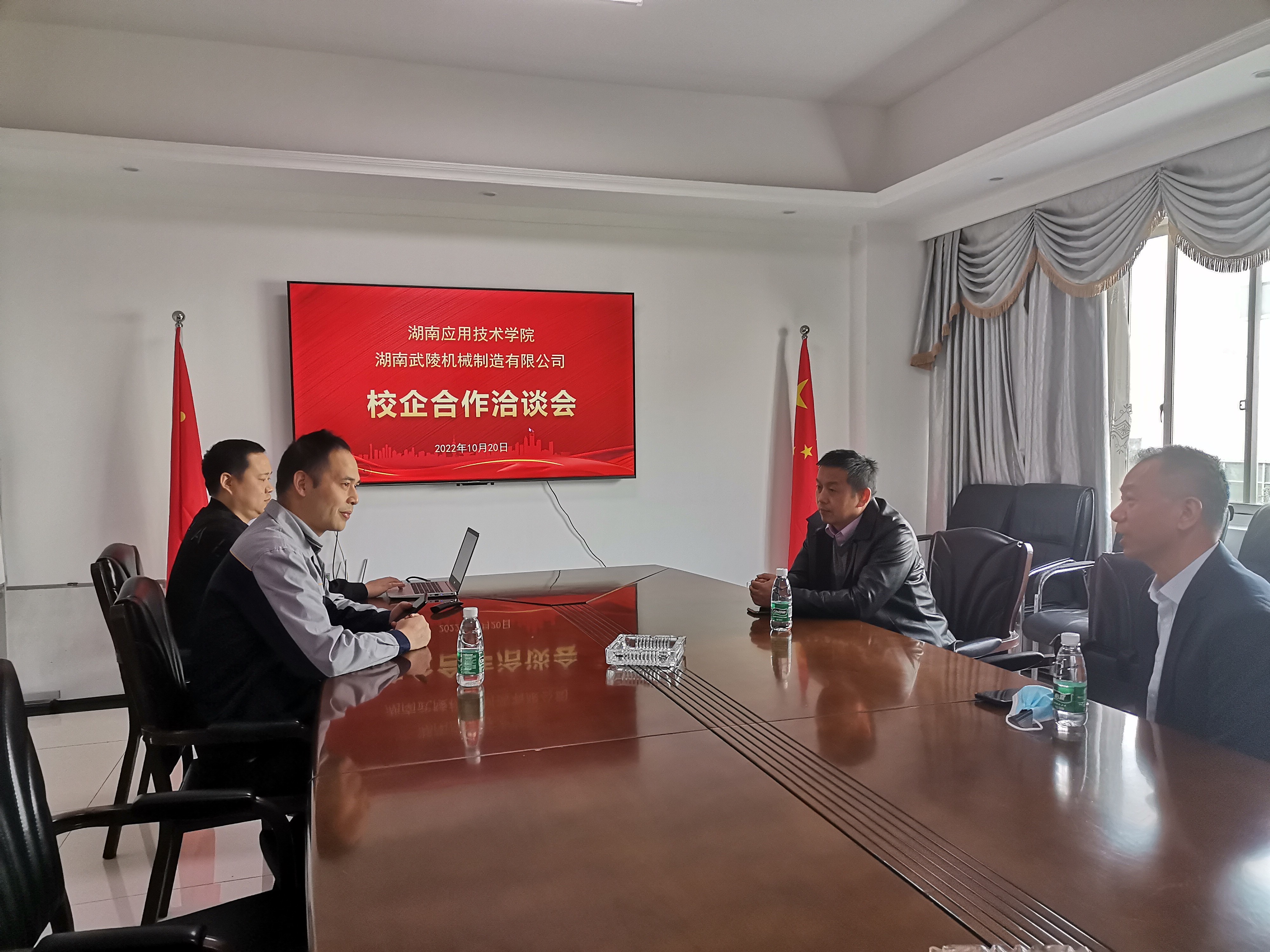 10月20日上午,由智慧谷人力资源市场牵线搭桥,湖南应用技术学院招就处汪处长、张处长一行到湖南武陵机械制造有限公司走访调研,并与企业开展校企合作洽谈会。