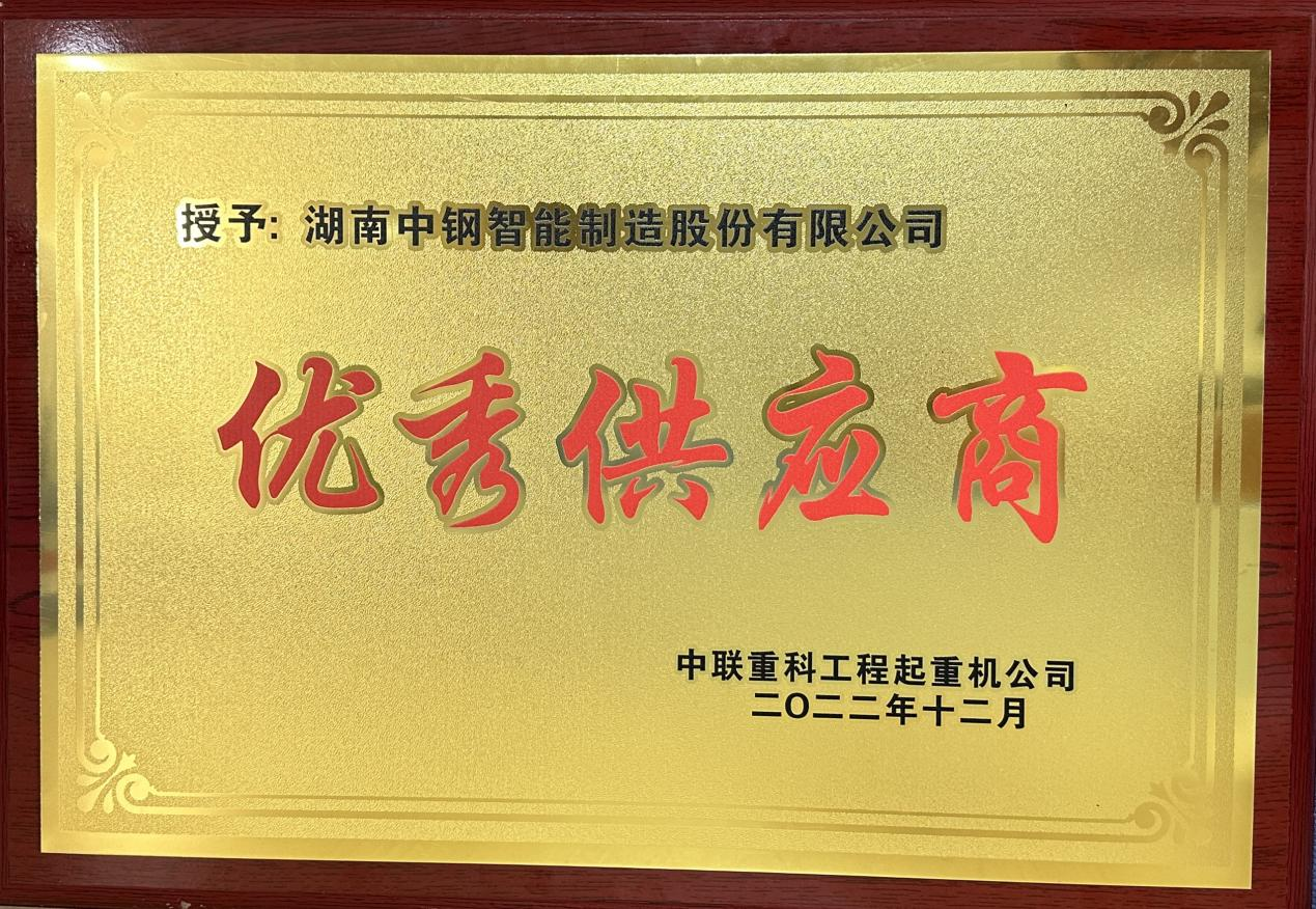 【概要描述】近日,湖南中钢智能制造股份有限公司贸易分公司荣获中联重科工程起重机公司“优秀供应商”荣誉称号。该荣誉是对湖南中钢产品质量和服务质量的高度认可。